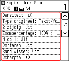 Naast de basisinstellingen voor kopiëren beschikt het apparaat ook voor instellingen voor 2-zijdig kopiëren, aanpassing van de afbeeldingskwaliteit en andere instellingen op basis van uw origineel en doel. Gebruik het kopieerscherm om deze instellingen te configureren.