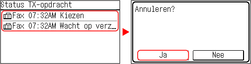 Als een scherm met de taaklijst verschijnt, selecteer dan de taak die u wilt annuleren, en druk op [Ja].