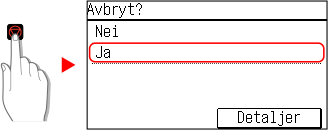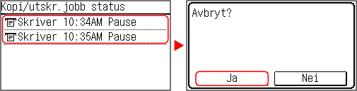 Hvis skjermbildet for jobbliste vises, velger du hvilken jobb som skal kanselleres, og trykker på [Ja].