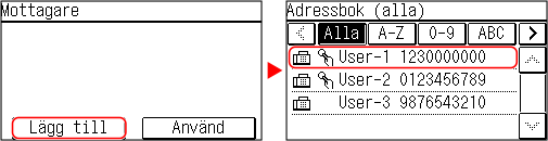 Om skärmen [PIN-kod för adressbok] visas anger du PIN-koden och trycker på [Använd].