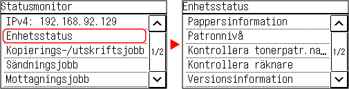 När rullningslisten visas på skärmen indikerar det att det finns poster eller information som inte får plats på skärmen. Gör en kort tryckning på [