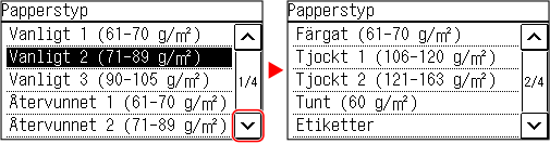 ] för att rulla skärmen i den riktning som du trycker på. Skärmen ändras sida för sida och sidnumret visas i rullningslisten.