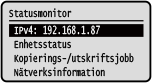 [Visa IP-adress] [Felinformation/avisering]Du kan kontrollera information om fel som inträffar på enheten. Vidta åtgärder beroende på felmeddelandets innehåll.