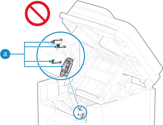 Håll tonerpatronen i handtaget. Undvik att repa trummans yta (  ) eller utsätta den för ljus. Vidrör inte de elektriska kontakterna (  ) eller tonerpatronens minne (  ). |