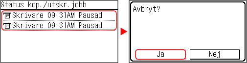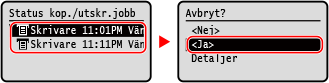 Om jobblistan visas väljer du jobbet som ska avbrytas och trycker på [Ja].