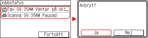 Om jobblistan visas väljer du jobbet som ska avbrytas och trycker på [Ja].