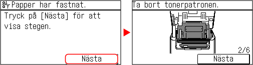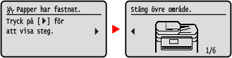 och följ anvisningarna som visas om hur du ska åtgärda pappersstoppet.