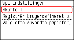 På betjeningspanelet skal du vælge [Papirindstillinger] på skærmen [Hjem] og trykke på