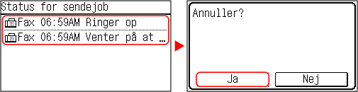 Hvis en skærm med joblisten vises, skal du vælge det job, du vil annullere, og trykke på [Ja].