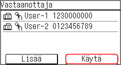 Jos [Osoitekirjan PIN] -näyttö tulee esiin, syötä PIN ja paina [Käytä].