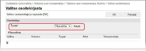 Voit muuttaa osoitekirjan näyttöä valitsemalla [Tyyppi]-kohdassa [Pikavalinta] tai [Lyhytvalinta] ja napsauttamalla [Näytä].