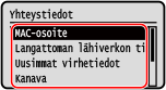 Langattoman lähiverkon MAC-osoitteen ja yhteystietojen näyttäminen
