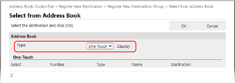 Väljal [Type] valige [Kiirvalik] või [Coded Dial] ja klõpsake [Display], et muuta aadressiraamatu kuva.