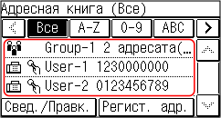 Изменение и удаление адресатов в адресной книге (панель управления) (Модель с сенсорной панелью)