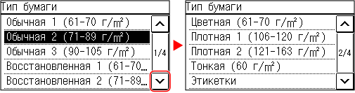 Когда на экране появляется полоса прокрутки, это означает, что имеются элементы или сведения, которые не могут полностью отображаться на экране. Нажимайте [