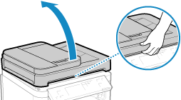 Откройте крышку устройства подачи или стекла экспонирования.