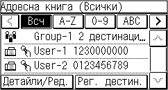 За да се покажат всички местоназначения, регистрирани в Адресната книга, изберете [Всч].