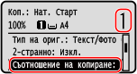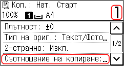 1 | Изберете размер на оригинала. Показва се само когато е зададено двустранно копиране. |