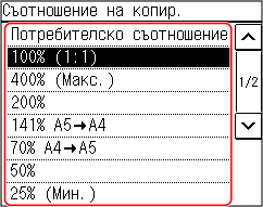 Натиснете [Потребителско съотношение], въведете персонализирано съотношение, като използвате цифровите клавиши, или натиснете