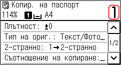 * Когато използвате Копиране на паспорт, за да правите копия, съотношението на копиране се задава автоматично според размера на хартията, използвана за копиране, и броя на паспортите за комбиниране. Можете също да натиснете [Съотношение на копир.], за да промените съотношението на копиране ръчно.