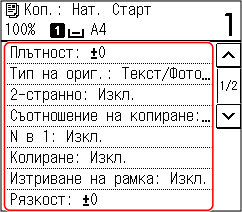 В допълнение към основните настройки за копиране, устройството има и настройки за двустранно копиране, настройка на качеството на изображението и други настройки според оригинала и целта ви. Използвайте екрана за копиране, за да конфигурирате тези настройки.