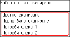 Екран [Начало]Показва се екранът за избор на тип сканиране.