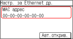 Можете да видите MAC адреса, зададен на устройството, когато устройството е свързано към кабелна LAN.