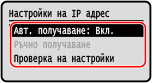 4 | Изберете [<Прилагане>] и натиснете .Извежда се екранът [Настройки на IP адрес]. |
