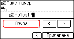 Влезте в Отдалечения ПИ  [Settings/Registration]  [TX Settings]  [Fax TX Settings]  [Edit]  в [Set Pause Time], въведете времето за пауза  [OK] |
