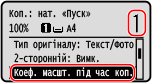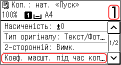 1 | Виберіть розмір оригіналу. Відображається тільки коли вказане 2-стороннє копіювання. |