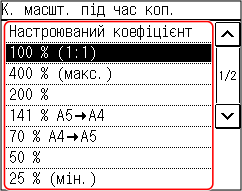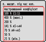 Натисніть [Настроюваний коефіцієнт], на цифровій клавіатурі введіть настроюваний коефіцієнт масштабування