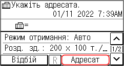 Введіть номер факсу за допомогою клавіш із цифрами чи виберіть зареєстроване місце призначення.