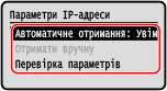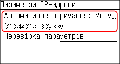 5 | Виберіть [Отримати вручну] і натисніть .Відобразиться екран введення IP-адреси. |
