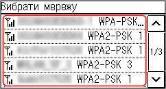 Знайдіть маршрутизатор безпроводової локальної мережі (точку доступу), до якого слід підключитися, і введіть ключ мережі. У разі підключення методом налаштування точки доступу встановлюються такі методи автентифікації та шифрування: метод автентифікації WEP: Open System; шифрування для WPA/WPA2: автоматично встановлюється протокол AES-CCMP або TKIP з урахуванням вибраного маршрутизатора безпроводової локальної мережі. Щоб указати інший метод автентифікації чи шифрування, підключіться за допомогою методу налаштування вручну. Підключення до безпроводової локальної мережі за допомогою налаштування даних (метод налаштування вручну) |