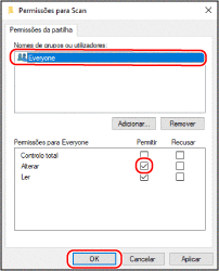 Em [Nomes de grupos ou utilizadores], selecione [Todos].