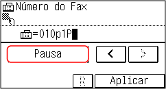 Ao enviar um fax para um destino internacional, introduza o número de acesso internacional, o indicativo do país e o número de fax do destino, por esta ordem. Prima [Pausa] entre os números para adicionar uma pausa.