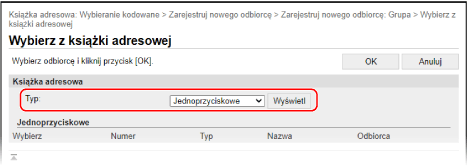 W [Typ] wybierz [Jednoprzyciskowe] lub [Wybieranie kodowane], a następnie kliknij [Wyświetl], aby zmienić sposób wyświetlania w książce adresowej.