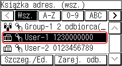 W przypadku określenia miejsc docelowych w książce adresowej użyj ekranu [Główny] lub ekranu faksu na panelu sterowania.