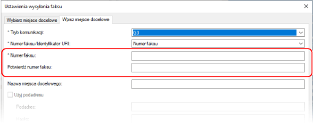 W karcie [Wpisz miejsce docelowe], wprowadź numer faksu. Gdy wprowadzony może być [Potwierdź numer faksu], wprowadź ten sam numer faksu.