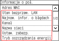 Wyświetlanie adresu MAC i informacji o połączeniu bezprzewodowej sieci LAN