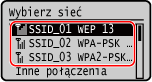 Aby określić inną metodę uwierzytelniania lub szyfrowania, użyj metody ręcznej konfiguracji połączenia. Łączenie się z bezprzewodową siecią LAN przez skonfigurowanie szczegółów (metoda konfiguracji ręcznej)