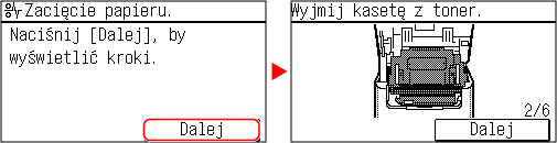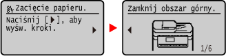 i postępuj zgodnie z wyświetlanymi instrukcjami dotyczącymi usuwania zacięcia papieru.
