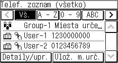 Ak chcete zobraziť všetky miesta určenia uložené v adresári, vyberte možnosť [Vš.].