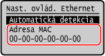 IP adresa zariadenia a informácie o adrese MAC sú potrebné na použitie vzdialeného používateľského rozhrania a na konfiguráciu nastavení brány firewall. Skontrolujte tieto nastavenia.