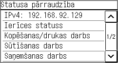 Šis ekrāns tiek parādīts, nospiežot vadības paneļa pogu