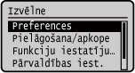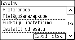 Ekrāna rādījuma maiņaVadības paneļa displeju var mainīt, mainot displeja valodu un vienības, kā arī rādot vai paslēpjot ziņojumus. [Rādīšanas iestatījumi]