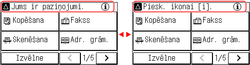 ]. Pēc noklusējuma ekrāns [Sākums] tiek parādīts pēc iekārtas ieslēgšanas un uzreiz pēc sākšanas ekrāna aizvēršanas, un uzreiz pēc pieteikšanās. Ekrāns [Sākums]|