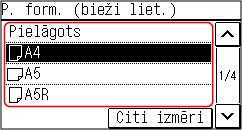 Varat mainīt ekrānā parādīto papīra formātu 3. darbības laikā. Neizmantoto papīra formātu slēpšana