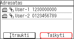 Jeigu rodomas ekranas [Adresų knygos PIN], įveskite PIN, tuomet paspauskite [Taikyti].