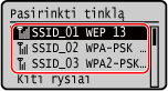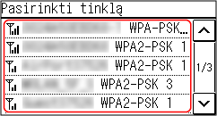 Ieškokite belaidžio LAN maršrutizatoriaus (prieigos taško), prie kurio norite prisijungti, ir įveskite tinklo raktą.